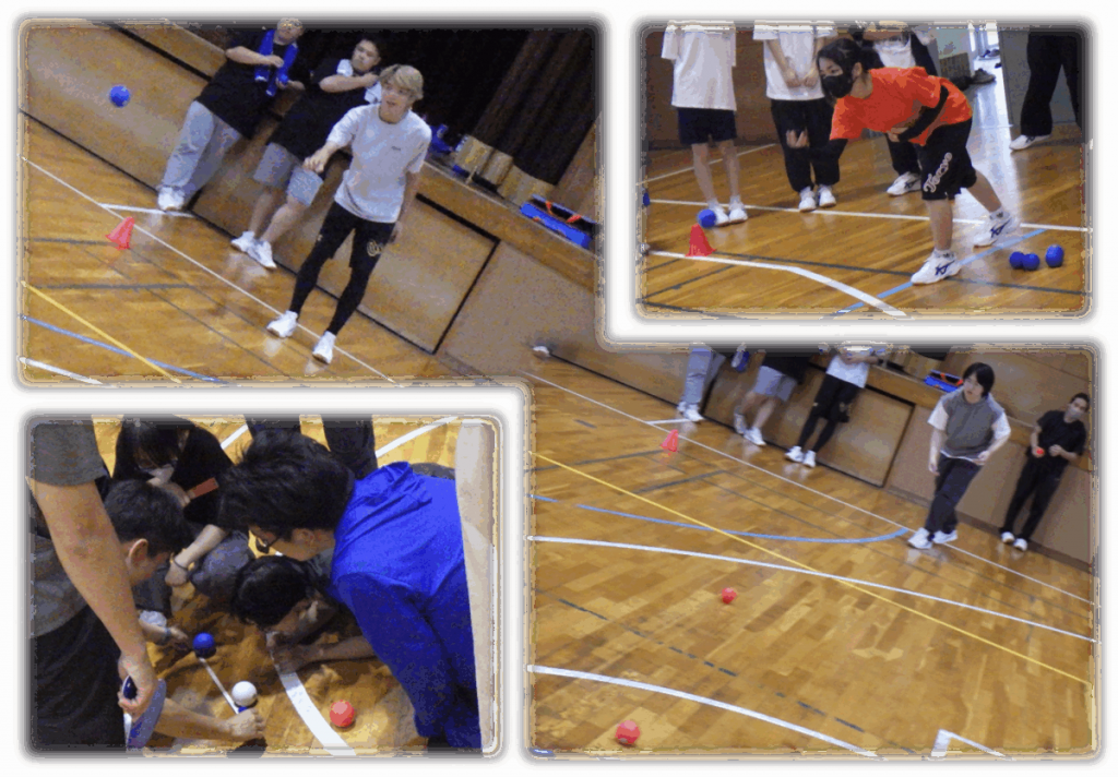 2025年度/HOME/定時制 定時制 令和7年度 スポーツレクリエーション大会 2025年6月20日 6月20日(金)に、スポーツレクリエーション大会を行いました。クラスの仲間や先輩・後輩との交流を深めることを目的として、モルックとボッチャに挑戦しました。互いに作戦を考えながら、熱戦が繰り広げられました。 モルックの様子 ボッチャの様子