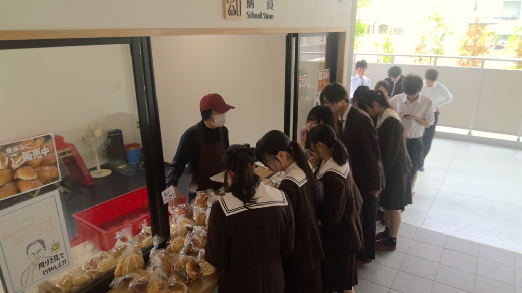 一時は「最後尾の人まで買えるかな?」と心配になるほどの長蛇の列でしたが、無事に並んでいた生徒全員がパンを手にすることができ、みんな満足そうな笑顔を浮かべていました。